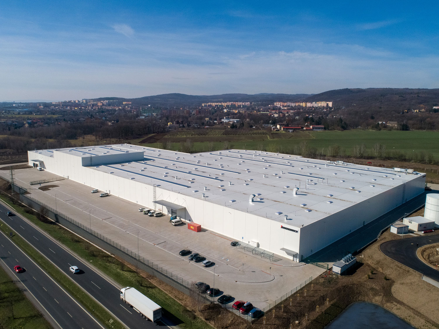 The energy efficient and CO2-optimised plant in Chomutov is not only the newest but also the most sustainable ever built by Jungheinrich. In addition to the use of green electricity and the installation of heat pumps, a special thermal insulation in the office area ensures additional energy savings. Jungheinrich was able to reduce its water consumption by means of rainwater harvesting equipment. Furthermore, the plant is located on a 1.5-hectare green space with native bushes and trees and thus contributes to the promotion of local biodiversity.